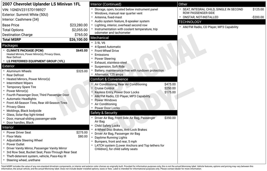 Summit White 2007 Chevrolet Uplander LS FWD 4-Speed Automatic with Overdrive 3.9L V6 SFI