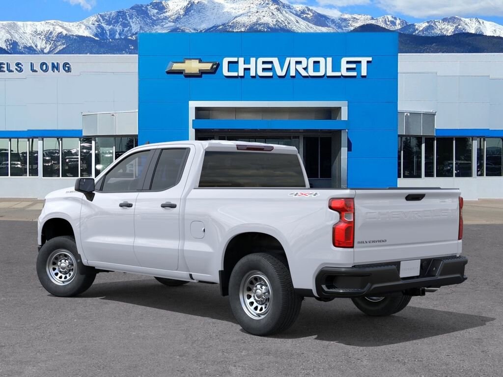 Recent Arrival!Limited Lifetime Powertrain Warranty included!Summit White 2026 Chevrolet Silverado 1500 WT 4WD 8-Speed Automatic 2.7L I4 Turbocharged DOHC 16V LEV3-SULEV30 310hpDANIELS LONG CHEVROLET will beat any local written offer by $500. See Dealer for details., 8-Speed Automatic, 4WD, Jet Black Vinyl.Standard Suspension Package, Trailering Package (Hitch Guidance), WT Convenience Package (Deep-Tinted Glass, Electric Rear-Window Defogger, and Heated Power-Adjustable Outside Mirrors), WT Value Package, 8-Speed Automatic, 4WD, Jet Black Vinyl, 220 Amp Alternator, 3.42 Rear Axle Ratio, 3.5 Monochromatic Display Driver Info Center, 4-Way Manual Driver Seat Adjuster, 4-Wheel Disc Brakes, 40/20/40 Front Split-Bench Seat, 6 Speakers, 6-Speaker Audio System, ABS brakes, Air Conditioning, AM/FM radio, Apple CarPlay/Android Auto, Auto High-beam Headlights, Automatic Emergency Braking, Black (Semi-Gloss) Front Bumper, Black (Semi-Gloss) Rear Bumper, Black Manual Outside Mirrors, Bluetooth® For Phone, Brake assist, Compass, Delay-off headlights, Driver door bin, Dual front impact airbags, Dual front side impact airbags, Electronic Cruise Control, Electronic Stability Control, Emergency communication system: OnStar, Following Distance Indicator, Forward Collision Alert, Front anti-roll bar, Front Center Armrest w/Storage, Front Frame-Mounted Black Recovery Hooks, Front Pedestrian Braking, Front reading lights, Front wheel independent suspension, Fully automatic headlights, HD Rear Vision Camera, Illuminated entry, Inside Rearview Mirror with Tilt, IntelliBeam Automatic High Beam on/Off, Lane Keep Assist with Lane Departure Warning, Locking Tailgate, Low tire pressure warning, Manual Tailgate Function with No EZ Lift, Manual Tilt Wheel Steering Column, Occupant sensing airbag, OnStar Services Capable, Outside temperature display, Overhead airbag, Overhead console, Panic alarm, Passenger door bin, Passenger vanity mirror, Power Front Windows with Driver Express Up/Down, Power Front Windows with Passenger Express Down, Power Rear Windows with Express Down, Power steering, Power windows, Premium audio system: Chevrolet Infotainment 3, Radio data system, Radio: Chevrolet Infotainment 3 System, Rear 60/40 Folding Bench Seat (folds Up), Rear reading lights, Rear step bumper, Remote Keyless Entry, Remote keyless entry, Rubberized-Vinyl Floor Covering, SiriusXM Delete, Solar Absorbing Tinted Glass, Speed control, Speed-sensing steering, Split folding rear seat, Standard Tailgate, Tachometer, Teen Driver, Tilt steering wheel, Tire Pressure Monitoring System, Traction control, Trip computer, Variably intermittent wipers, Vinyl Seat Trim, Voltmeter, Wheels: 17 x 8 Ultra Silver Painted Steel, and Wi-Fi Hot Spot Capable.